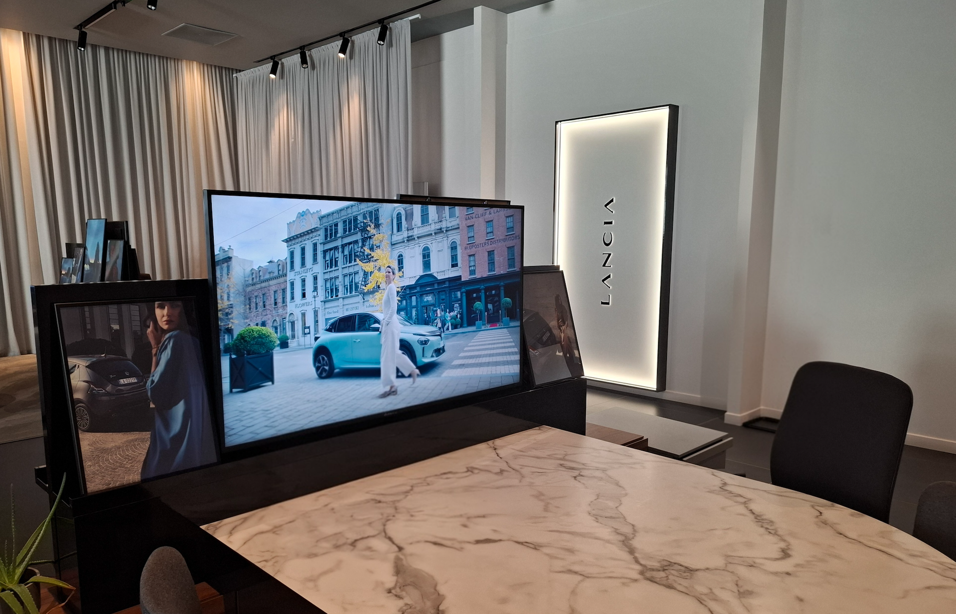 Il design slim e con cornici ultrasottili assicura un perfetto equilibrio tra estetica e funzionalità, integrandosi nell'architettura degli showroom Stellantis. Basta un click e i Brand possono trasmettere sugli schermi tutti i contenuti multimediali sviluppati dalla Marketing Intelligence di ciascun marchio. Video emozionali, highlight di prodotto e storytelling coinvolgono i visitatori in un viaggio narrativo che esalta il carattere e l'unicità di ogni modello.