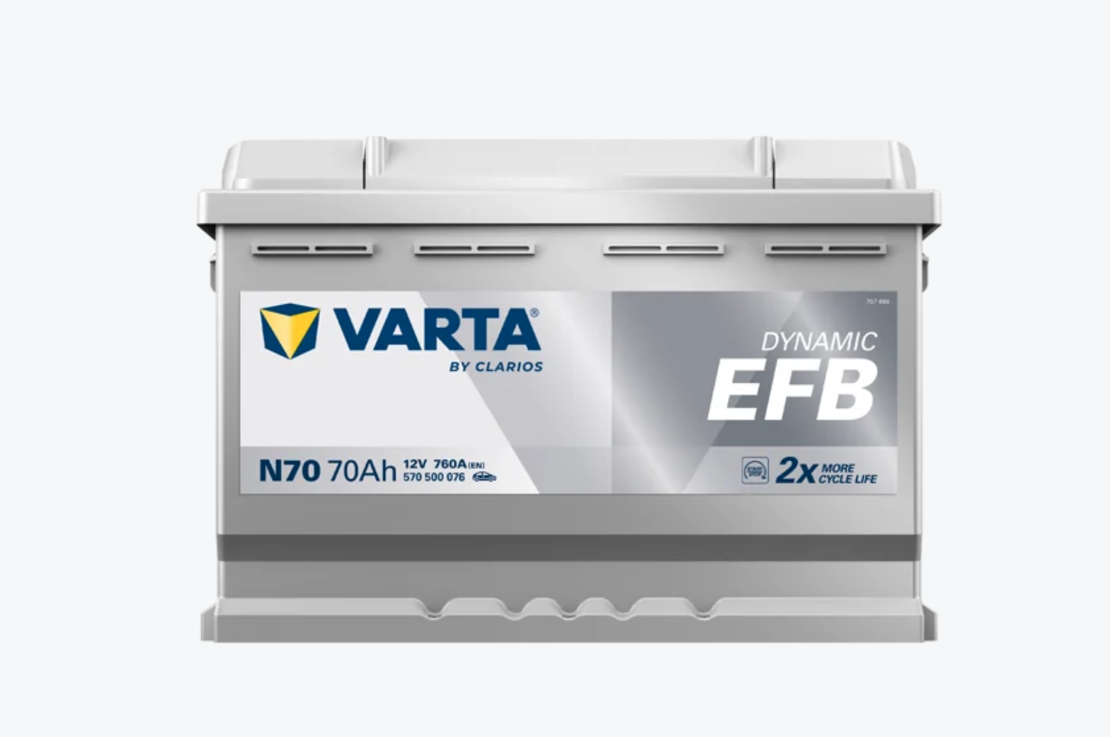 Clarios ha sviluppato le batterie VARTA Dynamic EFB: potenti, resistenti, e soprattutto facili da riconoscere. Sulla batteria è applicata infatti un'etichetta argento con dei simboli identificativi.